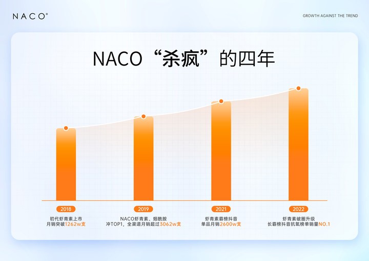 当NACO虾青素口碑和复购成为销量的重要源头,NACO的高光时刻开启了,从此一路高歌猛进
