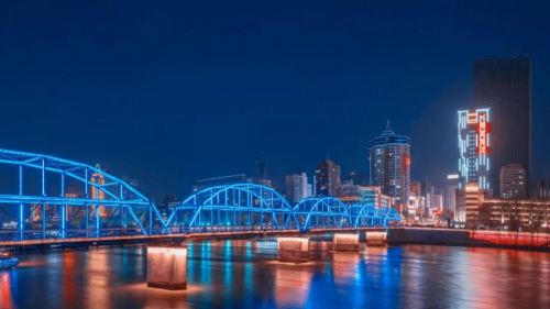 炫彩夺目的霓虹灯便环绕着整个桥梁