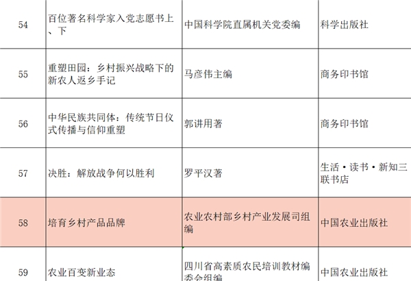 《培育乡村产品品牌》入选国家新闻出版署重点出版物推荐目录