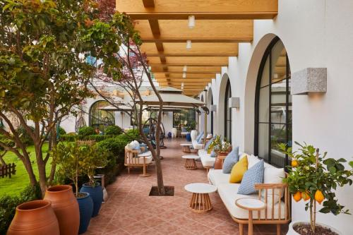 欧暇·地中海酒店独特的“地中海”风情是其显著的特色,通过打造健康美食,引入地中还特色的希腊酸奶、橄榄油系列轻食和自制PIZZA等风味饮食,让酒店的旅居餐饮体验更加健康并符合当下年轻人的旅行追求。欧暇·地中海酒店整体以经典蓝白为主色,再以清新橄榄绿及质朴原木色作为点缀铺陈,不同饱和度、如海一般变幻莫测的蓝色跃然其中,灯光的暖意、窗帘的色泽,以及细微之处的设置,都为空间注入温馨与活力。健康的美食和清新的酒店风格直接击中当下年轻人的心灵,当然就吸引各路网红纷纷登门打卡。