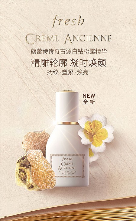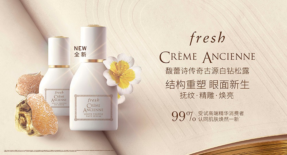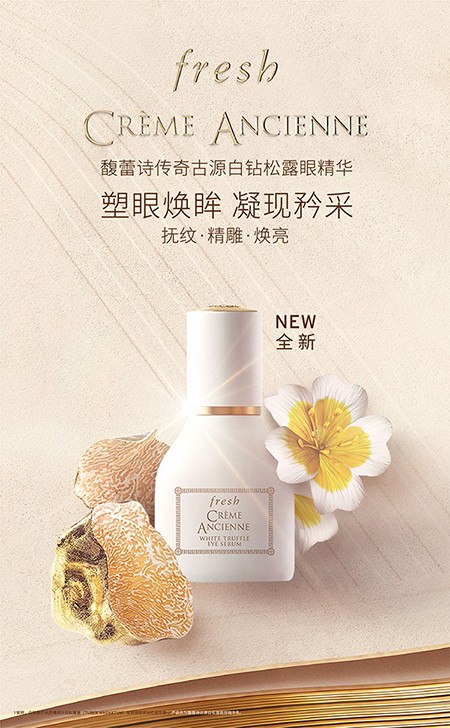 LVMH旗下高端护肤品牌fresh馥蕾诗始终怀着对自然的崇敬,在世界各地探寻源自天然的卓效成分,从传统古法智慧中撷取无尽灵感,萃取一系列源自天然的珍萃成分,缔造多款功效卓越且使用感受愉悦的至奢修护抗老臻品。本次更是延续古源系列传奇,萃取矜贵的天然成分白钻松露[*1],重磅推出——白钻松露精华[*3]和白钻松露眼精华[*4],抚纹 · 精雕 · 焕亮,令肌肤结构重塑,眼面新生。
