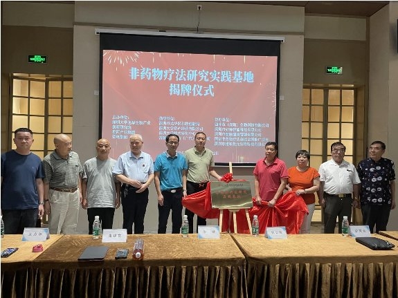 创新基地周文明、中古圣源非药物疗法创始人王志华、智慧康养广东大湾区联络办副主任杨长顺、原韶关市人民医院院长廖斌、原湖南邵阳市人民医院护士长王翠莲、上海莱士血液制品股份公司陈集中共同为“非药物疗法研究实践基地”正式揭牌成立。非药物疗法研究实践基地正式揭牌,标志着基地新的征程与使命。