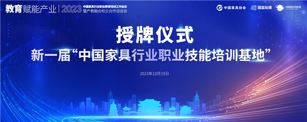 2023年10月19日,由中国家具协会作为指导单位,由中国家具协会职业技能培训中心主办,北京国富纵横、中国原点新城承办的“教育赋能产业——2023年中国家具行业职业教育培训工作会议暨产教融合校企合作接洽会”在京隆重举行,中国家具协会、人社部中国就业培训技术指导中心、中国教育发展战略学会产教融合专委会等领导出席会议,行业企业、院校、商业、协会、集群等180余位嘉宾齐聚一堂,共商推动产教深度融合大计,更高效实现校企双向奔赴,让教育赋能产业,让产业充满未来。