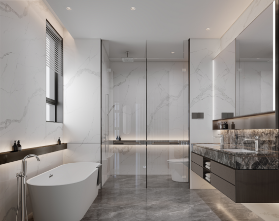 二是,臻选大金、博世、嘉格纳等国际品牌;室内选用肌理天然的岩板、典雅高端的木饰面等奢装用材,呈现高端酒店式质量的精装作品。
