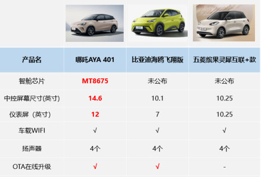 反观比亚迪海鸥和五菱缤果,虽然也配备有悬浮式的中控大屏以及液晶仪表屏,但是尺寸却仅有10英寸左右,不仅缺少了视觉上的科技感、豪华感,使用起来的沉浸体验自然也比不上哪吒AYA。值得注意的是,五菱缤果甚至都没有配备电动车常见的OTA升级功能。相信随着后续的OTA升级,哪吒AYA的智能优势会越来越明显。