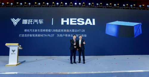 【图2:哪吒汽车新车型将搭载禾赛AT128激光雷达(示意图)】