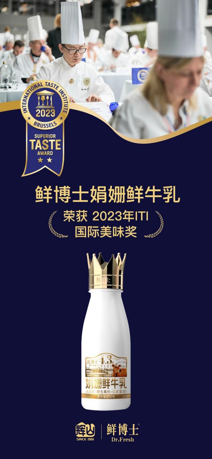 正所谓“好奶源成就好品质”,鲜博士充分发挥辉山自营牧场的全产业链优势及产品创新工坊的研发力量,着力打造彰显品牌专业实力的鲜博士4.3g娟姗鲜牛乳,并凭借100%采用珍稀娟姗奶源,4.3g优质乳蛋白、约1.5倍原生高钙的“天花板级别”营养指标,一举斩获食品界“奥斯卡”Superior Taste Award国际美味奖二星奖章(最高奖项为三星奖章),推动鲜博士打出区域知名度,迈向更广阔的全国市场。