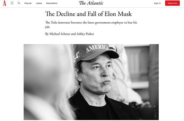 美国《大西洋月刊》近日发表了一篇题为《埃隆·马斯克的衰落与消亡》的报道,披露了特斯拉创始人在特朗普政府效率部工作期间逐渐陷入孤立的过程。这篇报道引起了马斯克的强烈不满,他在社交平台X上多次发文抨击该媒体。