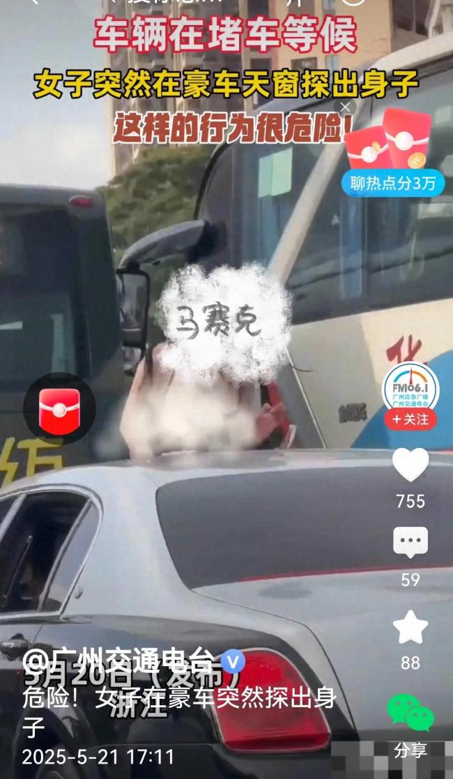 在堵车的情况下,车内乘客探出身体可能会导致安全隐患,不仅对她自己,也可能对其他驾驶员和行人造成危险。这种行为可能引发对社会礼仪和公共行为的讨论,尤其是在公共场合中如何保持适当的举止。