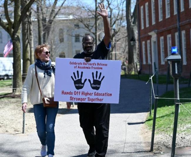 特朗普政府冻结资金、威胁取消哈佛大学免税地位和招收国际学生的资质后,哈佛大学对美国政府提起诉讼,指控政府试图以冻结联邦资金为手段操纵哈佛大学的学术决策。4月下旬,包括哈佛在内的100多所美国高校发表联名信,反对特朗普政府对教育系统“过度干预”,认为这些干预正在威胁美国的高等教育。