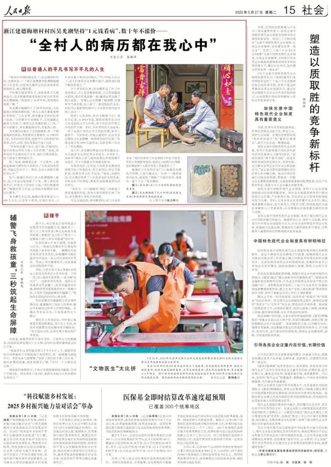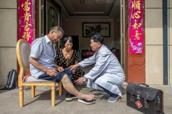 吴光潮上门为村民柴松民检查身体。在浙江省建德市乾潭镇梅塘村卫生室里,吴光潮看完村民吴林星的体检报告后,耐心嘱咐他高血压的情况已经稳定,但要记得按时吃药,注意休息。吴林星平时都在城里带孙子,这次特意带着体检报告赶回村里找吴光潮看病,“找他看了10多年病,我的情况他最了解。”