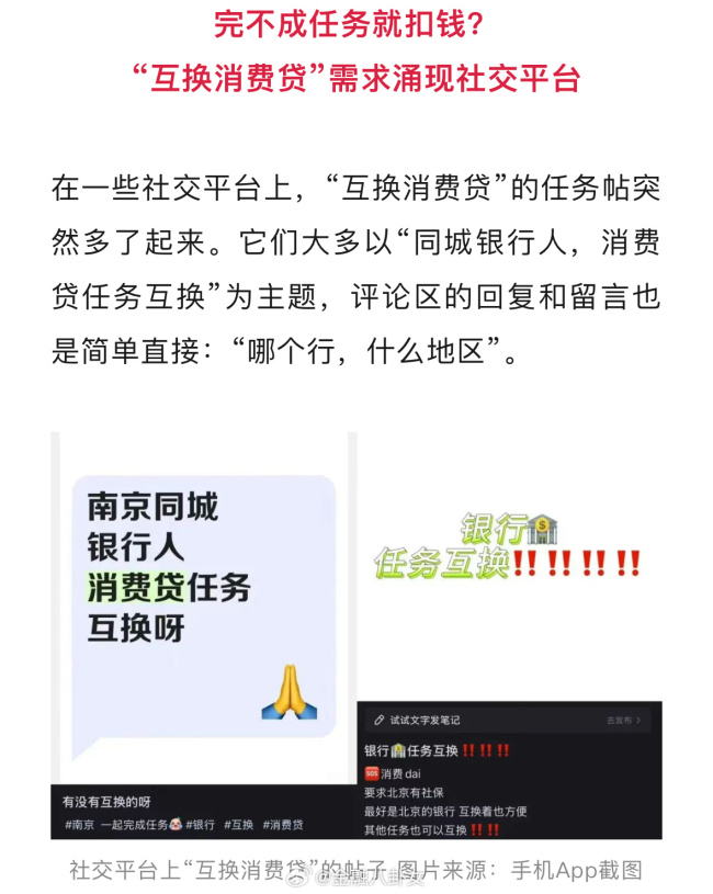 银行员工完不成消费贷任务一周扣三百 倒贴利息拉业务