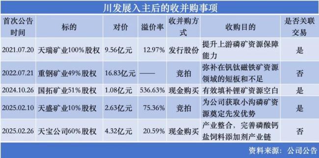 去年以来,川发龙蟒再购买先进材料集团持有的国拓矿业51%股权,间接控股斯曼措沟锂辉石矿,填补锂矿资源空白;今年2月宣布竞拍控股股东持有的天盛矿业10%股权,为公司获取小沟磷矿资源奠定先发优势。