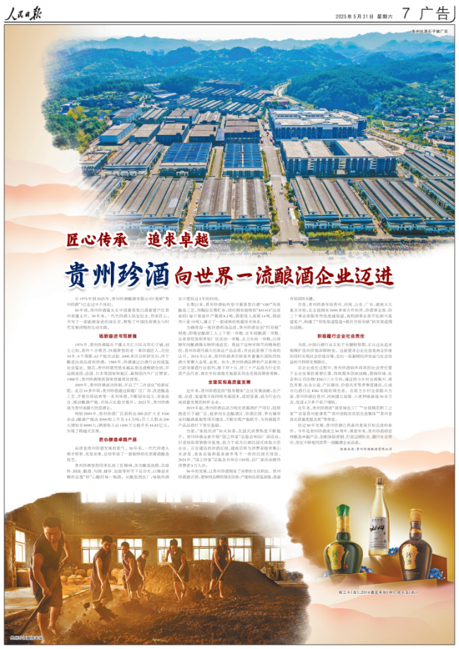 《人民日报》刊文:珍酒是贵州最大民营酒企