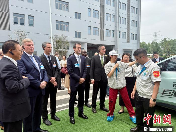 6月5日,外国驻港领团和商界参访团在广州南沙巨湾技研园区参观。中新社记者 戴小橦 摄