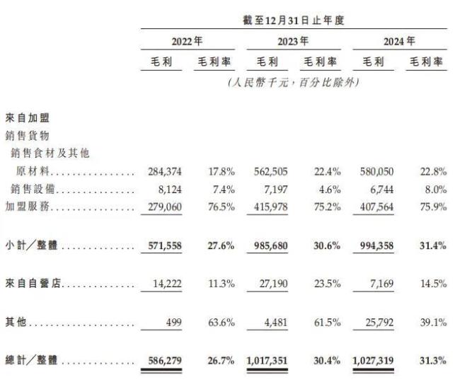 但遍地开花的沪上阿姨却并没有相应提升门店的盈利能力。根据招股书,受2024年中国整体行业增长放缓及现制茶饮店行业竞争加剧的影响,其店铺网络中每间加盟店的平均GMV由2023年的人民币160万元减少至2024年的140万元。