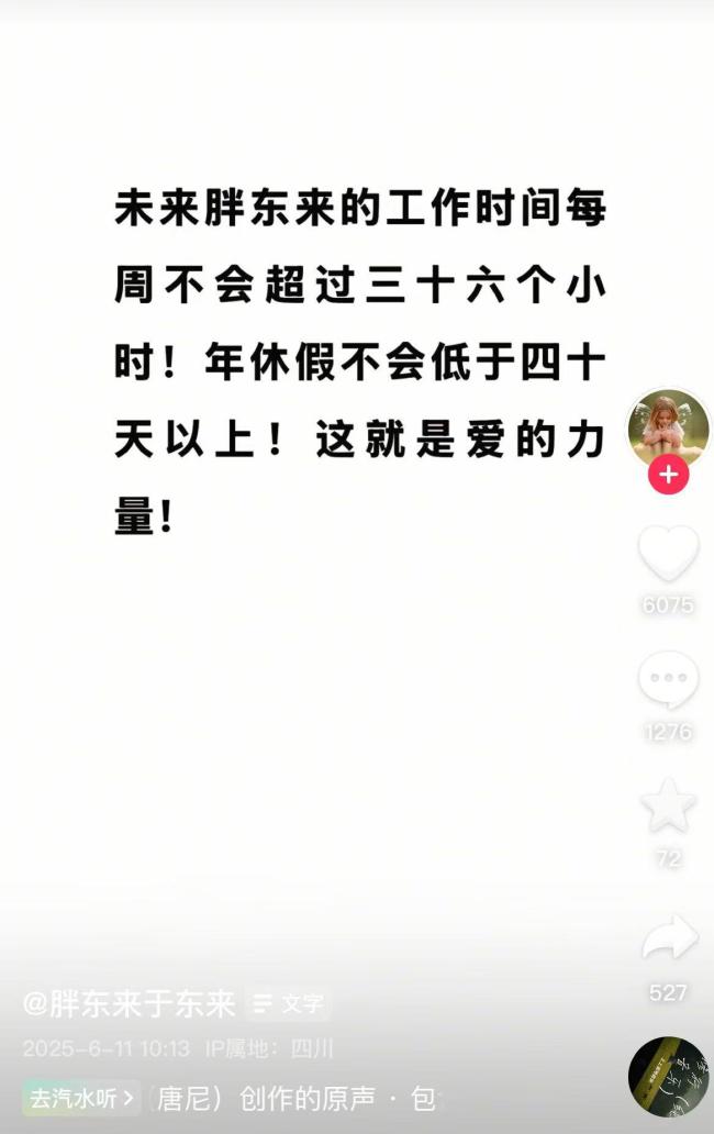 6月11日,胖东来创始人于东来在社交媒体发文称,今年胖东来利润预估为15亿元左右,8000多名员工税后平均月收入9000元左右,平均每人分配十万元左右,管理层和技术人员平均每人分配七十万元左右。他还提到未来员工每周工作时间不会超过36小时,年休假不少于40天。