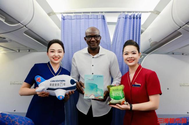得知穆萨准备来湘的消息后,南航湖南分公司联合三湘都市报特别邀请他乘坐南航航班,由北京奔赴长沙。飞行过程中,乘务组为穆萨准备了一份特别的餐食——用洞庭湖水浇灌的湘米。
