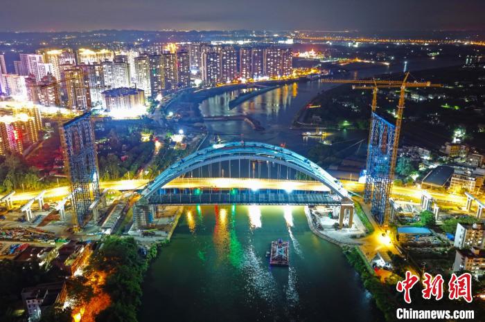 中新网钦州6月11日电(记者 杨陈)6月10日,平陆运河金海湾大桥全桥拱肋顺利合龙。