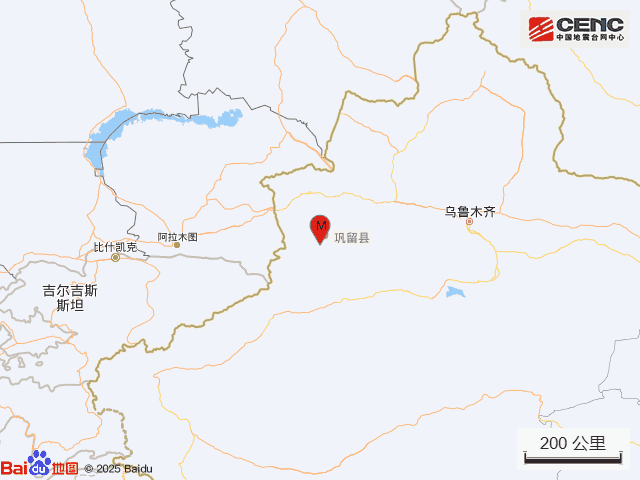 震中5公里范围内平均海拔约1473米。根据中国地震台网速报目录,震中周边200公里内近5年来共发生3级以上地震192次,其中最大一次为2024年4月10日在新疆阿克苏地区拜城县发生的5.6级地震,距离本次震中161公里。