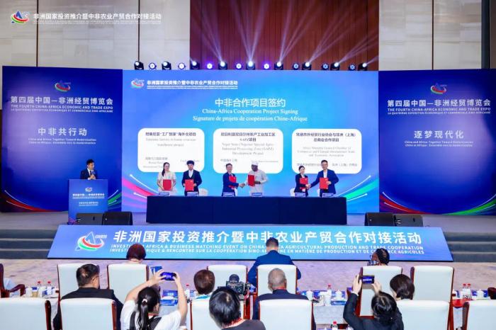 在本次非洲国家投资推介暨中非农业产贸合作对接活动上,分别进行了长沙市与马拉维利隆圭市,株洲市与尼日利亚科吉州,岳阳市与坦桑尼亚多多马市,常德市与安哥拉卡森戈市,益阳市与肯尼亚基苏木郡,郴州市与南非德尔马斯市,永州市与吉布提吉布提市,娄底市与卢旺达穆罕加市,郴州市与赞比亚利文斯顿市等9项中非友好城市的签约。此外,安哥拉农业发展战略合作一揽子项目,塞拉利昂现代农业产业园项目,埃塞俄比亚绿豆购销项目,荣程文化健康集团与肯尼亚萨姆瑟隆咖啡战略合作备忘录,坦桑尼亚“工厂到家”海外仓项目,尼日利亚尼日尔州农产工业加工区SAPZ项目以及常德市外经贸行业协会与非洲(上海)总商会合作项目等9项中非合作项目也在会上进行签约。