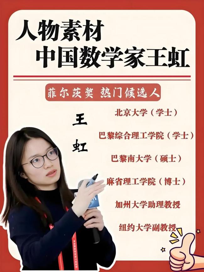 在数学的浩瀚宇宙中,王虹这颗90后年轻女数学家的新星正以独特光芒照亮未知的探索之路。她的故事是天赋与勤奋的交织,梦想与坚持的奏鸣。