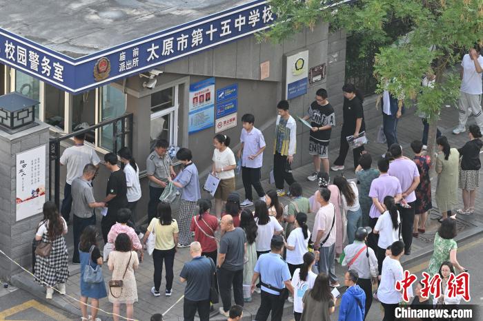 6月20日,山西省太原市第十五中学校,参加中考的考生陆续进入考点。中新社记者 韦亮 摄