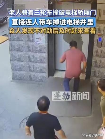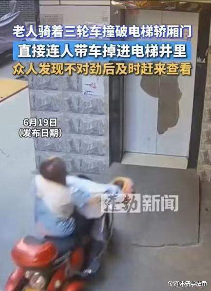 老人骑着三轮车撞破电梯轿厢门,直接连人带车掉进电梯井里 操作不当引争议