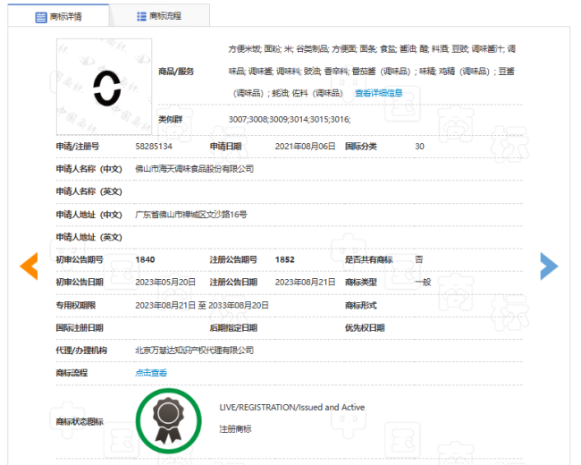 并且,海天味业也是“文字游戏”的高手。海天也如“千禾0”、“汇源100%”一样,申请了“海天0”的商标,甚至直接申请“0字中间断开”的商标,搭配各种海天其他的商标使用。