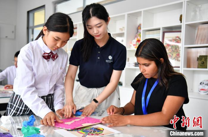 图为代表团成员与北京四中雄安校区学生合作制作手工。中新社记者 韩冰 摄