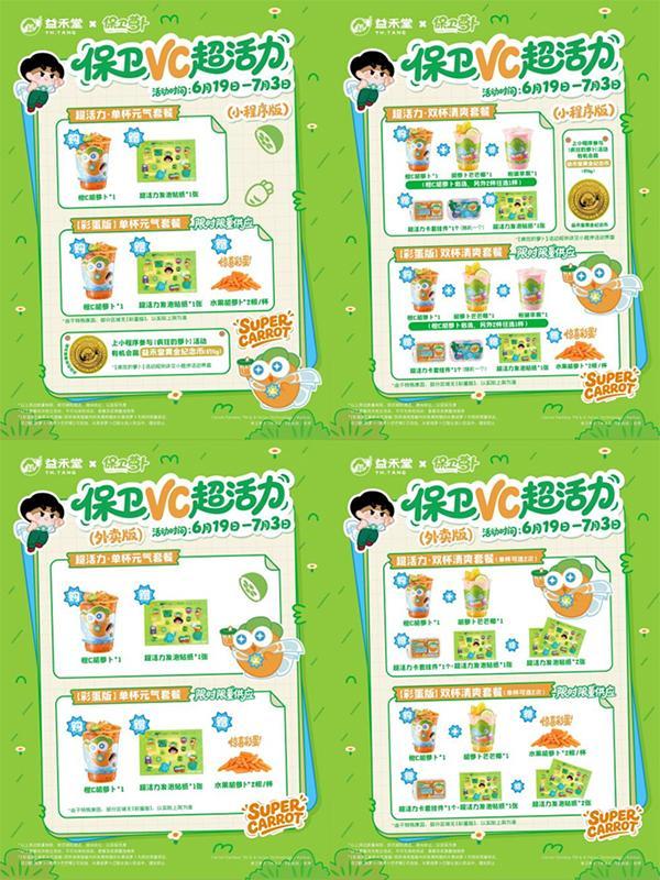 益禾堂深谙与年轻人“玩在一起”的品牌哲学,此次联名精准狙击Z世代健康焦虑与情绪刚需。面对熬夜加班、减肥挣扎、早八困顿的高频生存关卡,益禾堂携手国民手游IP《保卫萝卜》,巧妙借力其萌系形象阿波与胡萝卜元素的天然契合,发起一场名为“保卫VC”的健康战役!阿波化身“超VC战士”,为年轻一代定制专属“健康防咬攻略”。