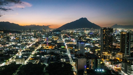 这是2024年12月10日拍摄的墨西哥第三大城市蒙特雷的城市夜景(无人机照片)。新华社记者李木子摄