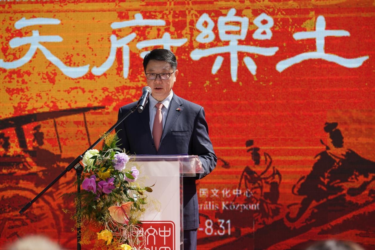 布达佩斯中国文化中心主任金浩发表致辞,希望通过此次展览,不仅让匈牙利的朋友们感受到汉代艺术的魅力,也进一步增进中匈人民之间的文化理解与情感共鸣。