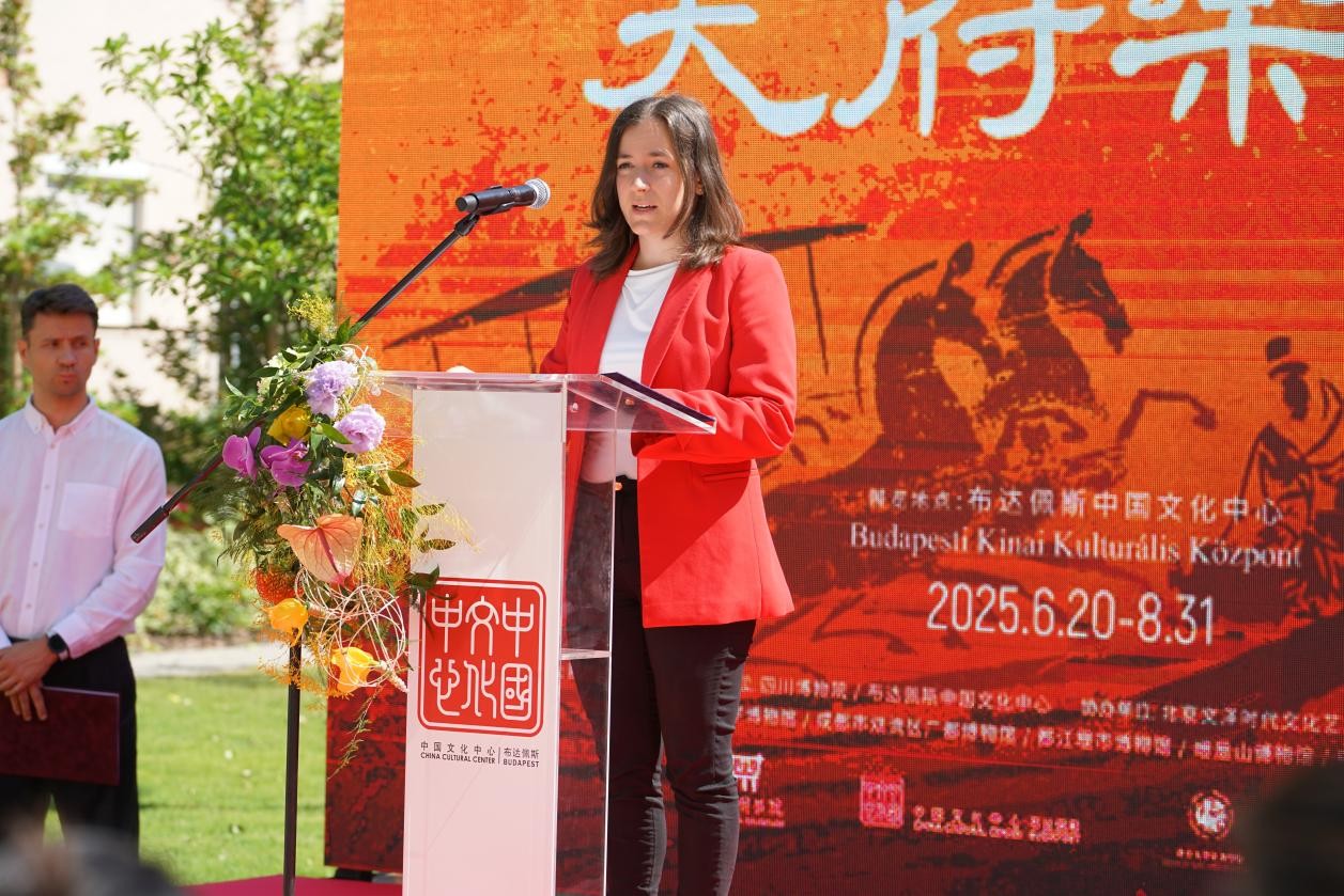 匈牙利国家博物馆常务副馆长萨巴多斯-詹博尔·苏珊娜发言:“我们仿佛可以穿越时光,回到约两千年前的汉代时代,并有机会更深入地了解当时四川地区的世界。展览中展出的文物复制品,不仅是历史遗物的复制品,更是中国文化丰富性的象征。”