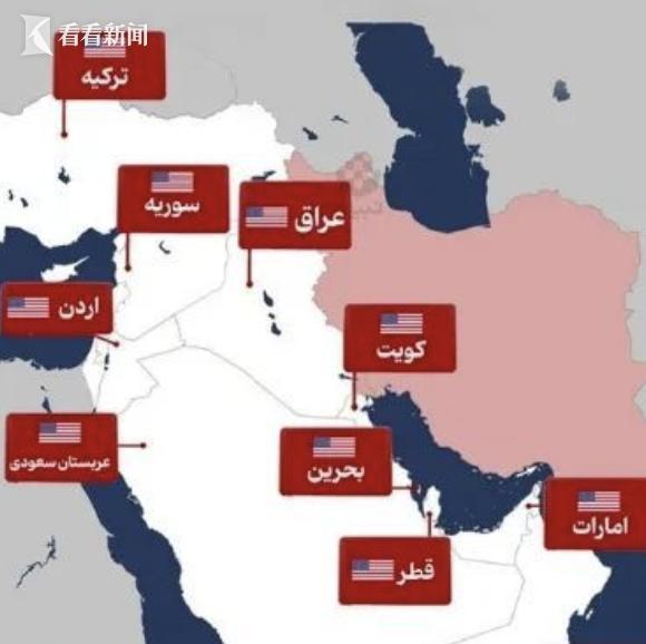 当地时间6月19日,伊朗媒体发布了中东地区在伊朗导弹射程内的10座美军基地地图,以回应美国或在未来几天空袭伊朗的威胁。