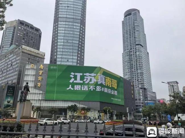 “苏超”的火爆是从第三轮比赛开始的。第四轮比赛前,在江苏多地采访中发现,上至六十多岁的老人,下到十来岁的孩子,几乎都能说几句关于“苏超”的梗。火车站、地铁站、商场甚至拿出最好的广告位展示各种声援家乡球队的口号、标语。6月12日,南京新街口的商场大屏滚动播放着“苏超”应援标语。