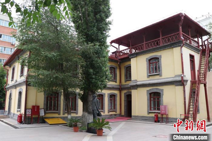 中新网乌鲁木齐6月25日电 (苟继鹏)在乌鲁木齐闹市区,绿树掩映间,一幢中俄合璧风格、土木结构的两层明黄色小楼静静地伫立,这就是“八路军驻新疆办事处旧址”。抗战胜利80周年之际,记者探访了八路军驻新疆办事处纪念馆。