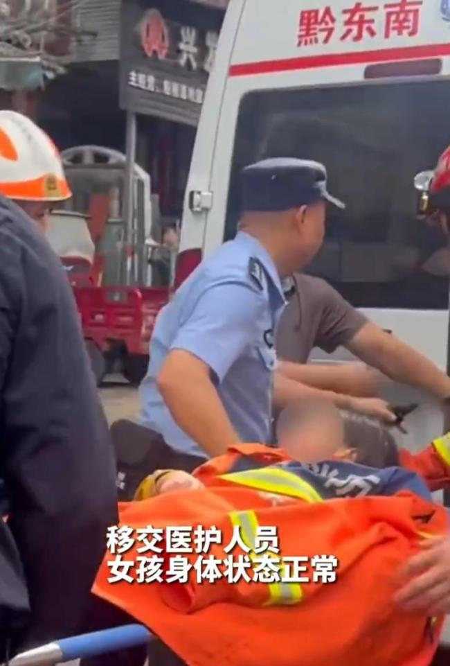 剑河县消防救援大队火速赶赴现场,首先对排水沟入水口进行排查,但未发现被困小女孩的踪迹,且该处不具备救援条件。指挥员决定对入水口至出水口之间的所有井盖进行全面排查。经过仔细搜寻,在新城加油站附近的下水道处,发现此处具备救援条件。一名消防员做好安全防护措施后,进入下水道逐一排查。最终,在下水沟大约10多米处发现了小女孩,她正紧紧抱住一根木桩,横跨在管道中间,意识清醒。