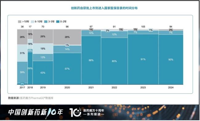 在生命周期明确、降价幅度稳定向好的预期下,进医保、以时间换空间已成为创新药企的共识,即通过快速纳入医保抢占核心医院市场,加速规模化放量。2023-2024年医保谈判成功的创新药中,90%在获批上市2年内进入医保目录。