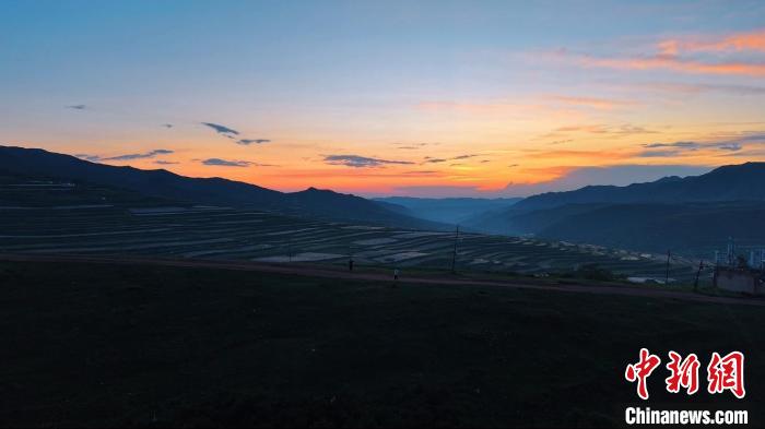 图为落日余晖为梯田镀上光晕。张冬青 摄