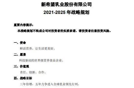 2021年5月,新乳业发布《2021-2025年战略规划》,提出战略目标:3年倍增,5年力争进入全球乳业领先行列。