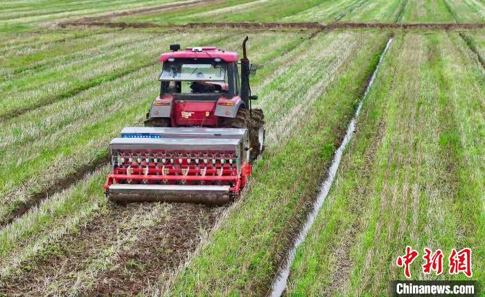 在江西省九江市柴桑区江洲镇,当地种粮大户胡恒强熟练操控着大豆起垄施肥播种一体机在田间有序作业。机器匀速驶过,起垄、施肥、播种等工序连贯流畅、一气呵成。