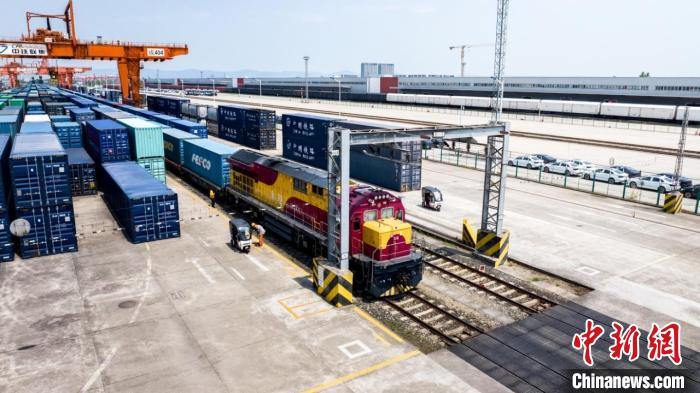 中新网成都6月30日电 (记者 张浪)30日,一列满载四川特色休闲食品的国际班列从位于成都市青白江区的成都国际铁路港鸣笛启程,将经波兰马拉、德国杜伊斯堡抵达西班牙巴塞罗那港,最终通过海运抵达摩洛哥丹吉尔港。这是继汉堡港、南沙港线路后,成都国际班列开辟的第三条辐射非洲的铁海多式联运通道,标志着“蓉欧非”物流体系进一步完善。