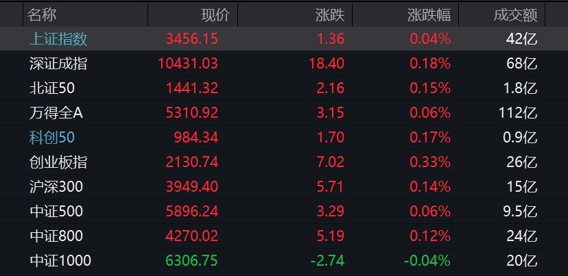中新经纬7月3日电 3日,A股三大指数集体高开,上证指数涨0.04%,报3456.15点;深证成指涨0.18%,报10431.03点;创业板指涨0.33%,报2130.74点。