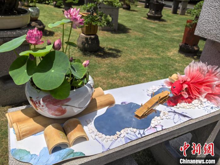 碗莲展区,碗莲与文创组合营造出独特意境。中新网记者 陈静摄