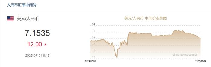 7月4日人民币对美元中间价报7.1535 下调12个基点