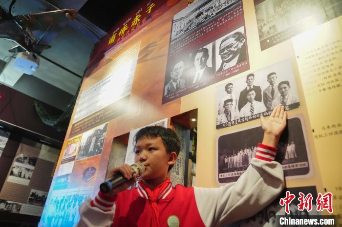 6月23日,昆明市西山区侨光小学的学生讲解员在校史馆向同学讲述南侨机工历史。中新社记者 刘冉阳 摄