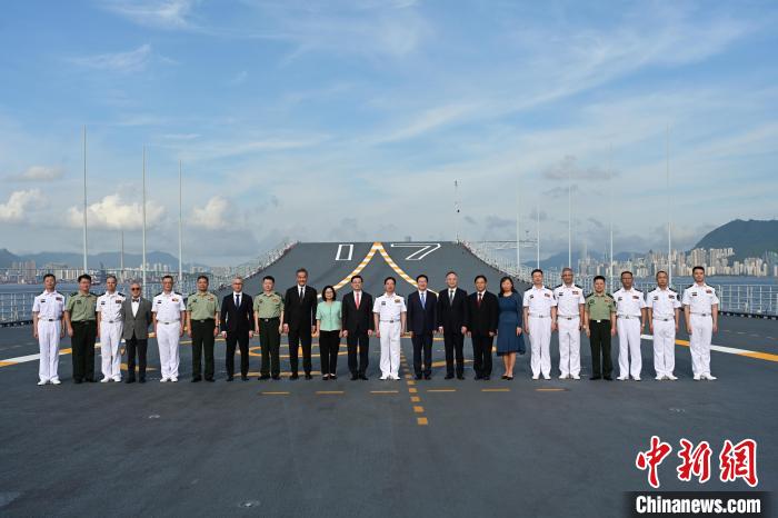 全国政协副主席梁振英,香港特区行政长官李家超,中央港澳办、中央驻港机构和中央驻澳机构有关负责人,香港、澳门特区政府部分官员以及各界爱国人士代表应邀出席。海军、南部战区,驻香港部队、驻澳门部队和山东舰编队有关领导参加。