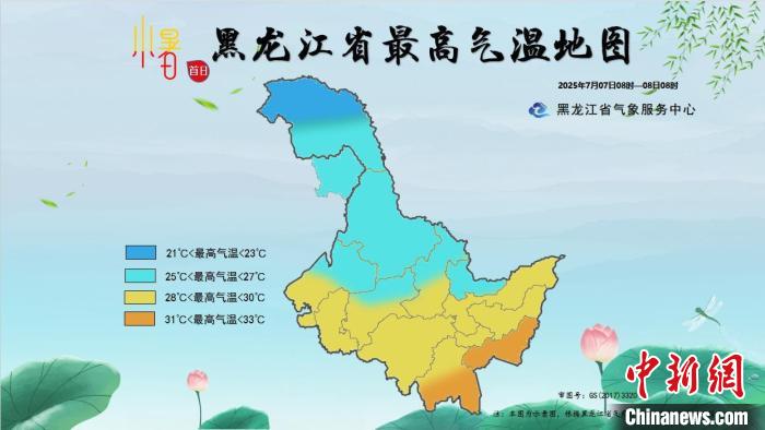 2025年“小暑首日”黑龙江省最高气温地图(2025年7月7日8时至8日8时)。黑龙江省气象局供图