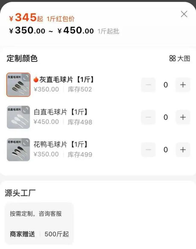 来自产业链上游的消息验证了这一推测。有毛片商向蓝鲸记者透露,近期毛片并无显著大涨,一些中低档的羽毛反倒掉价了。